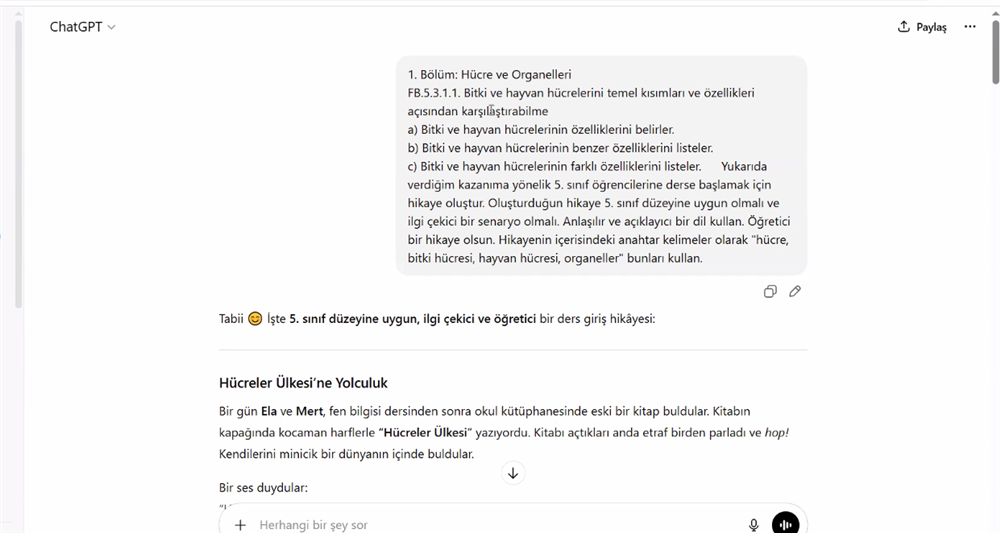 2025 yılı 2. dönem çağrısı kapsamında "Üretken Yapay Zeka Destekli Öğretim Materyallerinin Geliştirilmesi II" projesinde hazırlanan yapay zeka destekli materyallerden örnekler